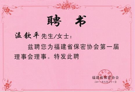 9月21日,全國首家省級保密協(xié)會——福建省保密協(xié)會第一屆第一次會員大會在福州隆重舉行。作為客戶保密工作取得顯著成效的典范企業(yè),我司總經理溫欽平應邀參加了此次會議,并受聘成為福建省保密協(xié)會理事成員,同時公司也受聘為省保密協(xié)會理事單位。