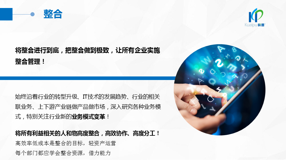 溫董在大會上指出:“成功的企業(yè)、成功的產品都在做符合人性的事!成功的個人都在挑戰(zhàn)人性弱點!作為中國企業(yè)信息化管理的服務商,我們應該充分理解人性定律,為客戶提供一切人性化的產品與服務,讓快普成為最懂企業(yè)用戶需求的中國企業(yè)!”