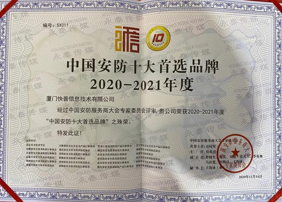 此次峰會(huì),快普以先進(jìn)的產(chǎn)品理念和優(yōu)秀的市場服務(wù)獲得業(yè)界的一致好評,并榮獲“中國安防十大品牌”,感恩安防行業(yè)客戶的支持,快普將堅(jiān)定使命,持續(xù)為新基建企業(yè)提供強(qiáng)有力的信息化管理支持。